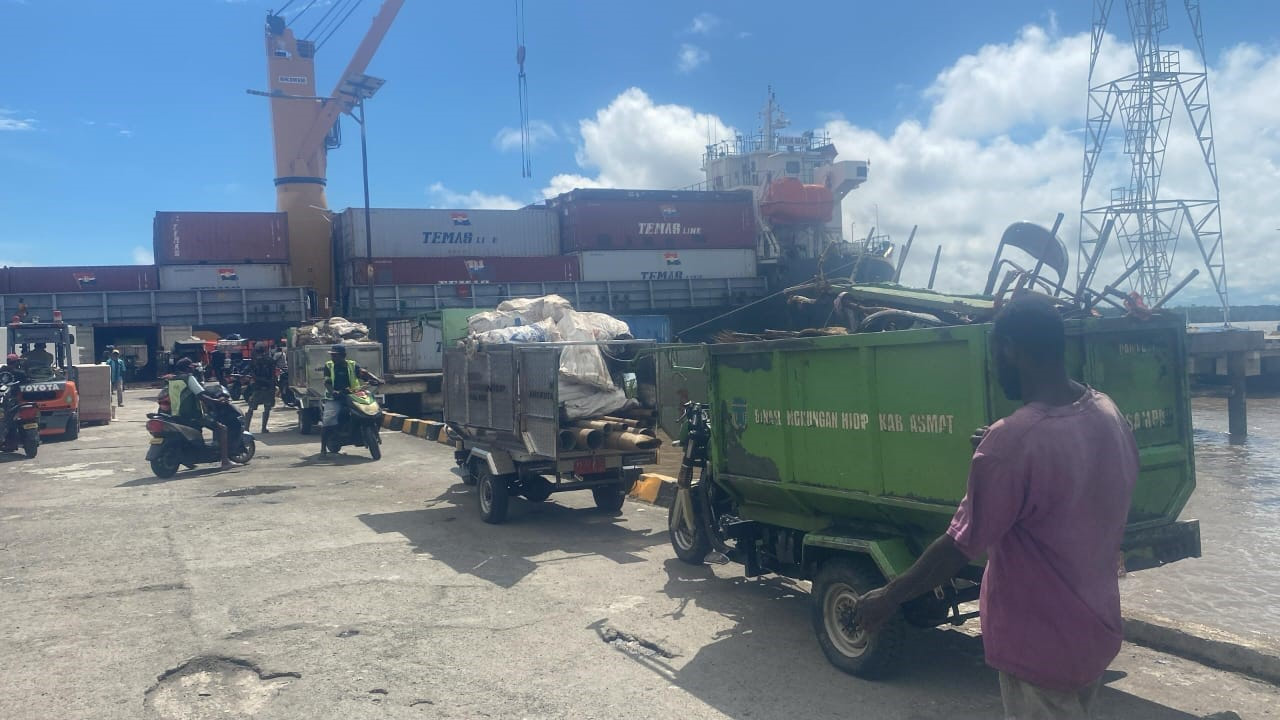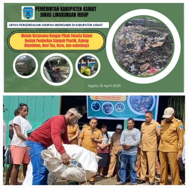 Kabupaten Asmat memiliki komposisi sampah yang didominasi dari sampah plastik kemasan terutama plastik botol air kemasan. Kabupaten Asmat masih mengandalkan metode konvensional dalam pengelolaan sampah dengan paradigma lama "kumpul, angkut, buang", yang memiliki berbagai keterbatasan dan tantangan, terutama dalam konteks geografis dan ekologi daerah tersebut. Alur proses pengelolaan sampah dalam penanganan sampah di Kabupaten Asmat dari, yaitu : Sampah diangkut ke TPS (Tempat Penyimpanan Sementara) yang pada akhirnya digunakan sebagai pembuangan akhir karena tidak adanya lokasi lahan yang dapat dijadikan sebagai TPA. Pengelolaan sampah di Kabupaten Asmat masih menggunakan metode open dumping. Untuk mengatasi kendala tersebut sehingga Pemerintah Kabupaten Asmat melalui Dinas Lingkungan Hidup merintis membentuk Bank Sampah pertama di Kabupaten Asmat yang bekerja sama dengan pihak swasta yang diketuai oleh Mishar Ramli dengan Nomor Induk Berusaha (NIB) 0210250063657 Skala Usaha Yaitu Usaha Mikro. Bank Sampah ini diharapkan dapat menjawab permasalahan sampah plastik di Kabupaten Asmat terutama botol-botol plastik. Sampah-sampah anorganik yang masih dapat di daur ulang nantinya akan dikumpul di Bank Sampah dan akan dikirim menggunakan Kapal Kontainer ke Surabaya. Pembentukan Bank Sampah ini diresmikan langsung oleh Bapak Bupati Asmat, Thomas Eppe Safanpo, S.T., M.Si pada tanggal 15 April 2025.