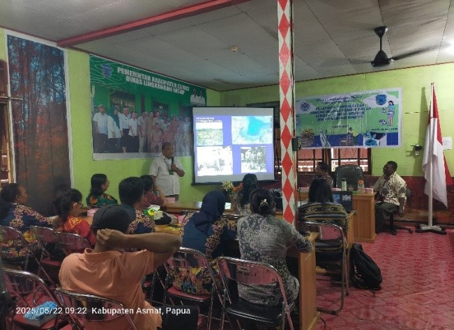 PELATIHAN PENGURANGAN SAMPAH MELALUI PEMANFAATAN KEMBALI SAMPAH ORGANIK DIOLAH MENJADI KOMPOS7/8/2025 Menurut Undang-Undang Nomor 18 Tahun 2008, pengelolaan sampah adalah kegiatan yang sistematis, menyeluruh, dan berkesinambungan yang meliputi pengurangan dan penanganan sampah. Pengelolaan sampah melibatkan semua individu tanpa terkecuali yang merupakan sebagai penghasil sampah, sehingga penting dilaksanakan sosialisasi pengelolaaan sampah. Sosialisasi pengelolaan sampah di masyarakat menjadi langkah krusial dalam upaya mengubah paradigma dan perilaku terkait sampah dan mengajak kita untuk merenung tentang bagaimana dampak dari pola konsumsi yang tidak bertanggung jawab dapat membawa konsekuensi serius terhadap ekosistem dan kesehatan manusia. Melalui pendekatan sosialisasi, kita berupaya untuk memberdayakan masyarakat agar lebih sadar akan pentingnya mengurangi, memilah, dan mendaur ulang sampah. Pemerintah Kabupatan Asmat melalui Dinas Lingkungan Hidup Kabupaten Asmat melaksanakan kegiatan sosialisasi dan pelatihan pengurangan sampah melalui pemanfaatan Kembali sampah organik diolah menjadi kompos. Tujuan kegiatan sosialisasi pengelolaan sampah dan pelatihan pengurangan sampah melalui pemanfaatan kembali sampah organik diolah menjadi kompos untuk meningkatkan peran serta masyarakat dalam pengelolaan persampahan juga menciptakan kebiasaan baru di masyarakat dengan mengubah mindset dalam mengelolah sampah bahwa sampah menjadi bentuk yang lebih bermanfaat dan tidak mencemari lingkungan dengan melakukan pengelolaan sampah dengan teknis Bank Sampah untuk sampah anorganik dan melalui pengomposan untuk sampah organik. Kegiatan sosialisasi pengelolaan sampah dan pelatihan pengurangan sampah melalui pemanfaatan kembali sampah organik diolah menjadi kompos di Ruang Rapat Dinas Lingkungan Hidup Kabupaten Asmat. Setelah kegiatan sosialisasi dan pemaparan materi dilanjutkan coaching clinic pembuatan kompos dari sampah organik yang berlokasi di Rumah Kompos Osawit. Kegiatan dilaksanakan pada hari Kamis, 22 Mei 2025 yang dihadiri oleh Narasumber dari Pusat Pengendalian Lingkungan Hidup Papua yaitu Bapak Dion Ingot Marudut, S.K.M yang merupakan Penyuluh Lingkungan Hidup Ahli Pertama, serta diikuti oleh berbagai elemen masyarakat yaitu perwakilan dari Balai Besar Konservasi Sumber Daya Alam Papua, Komunitas Asmat Trada Sampah, Pihak Sekolah, Paguyuban, Kepala Kampung Bis Agats, Bank Sampah dan pengusaha. Dari kegiatan ini Dinas Lingkungan Hidup Kabupaten Asmat bersama semua pihak yang hadir dari berbagai elemen berkomitmen untuk bekerja sama dalam mengurangi sampah yang ada di Agats. Karena masalah sampah bukan hanya masalah satu pihak saja namun semua pihak. Kedepannya diharapkan tetap menjaga kebersihan dan bersama-sama turut mengurangi jumlah timbulan sampah di Agats. Berita terkait juga dimuat pada seputar papua